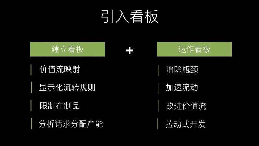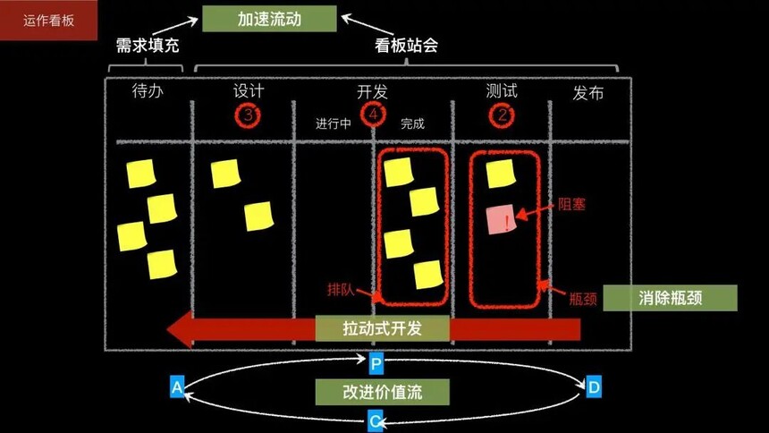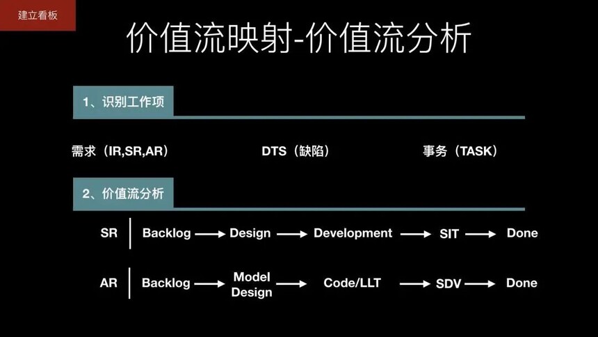 内容概述 业务痛点: 市场增加,需求增大 需求变化快,需要快速响应 目前的研发无法满足市场的需求,以及快速的响应变化。 引入看板: 1、建立看板 价值流映射 显示化流转规则 限制在制品 分析请求分配产能 2、运作看板 消除瓶颈 加速流动 改进价值流 拉动式开发 干货内容 本图文来源于网络,版权归原作者所有,如有侵权,请联系删除。 |